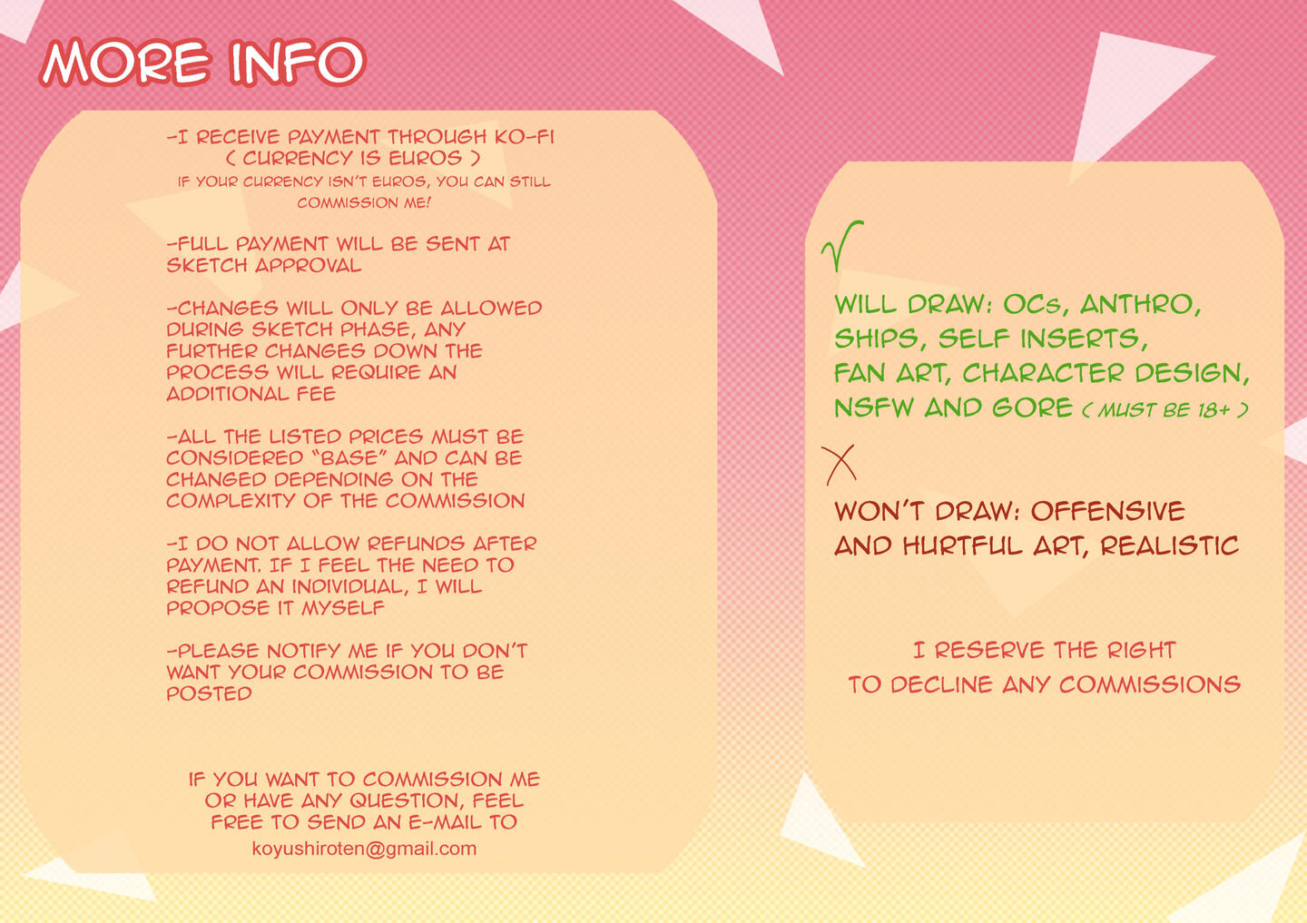 ━ Do not repost my art nor attempt to make profit off of it.━ You are allowed to use my art as icon as long as you credit me.━ Only the commissioner is allowed to use their commission, personal use only. Commissioners do not have the right to mint/sell their commissions for nft.━ Ask permission to use my art in any kind of edit and credit me.